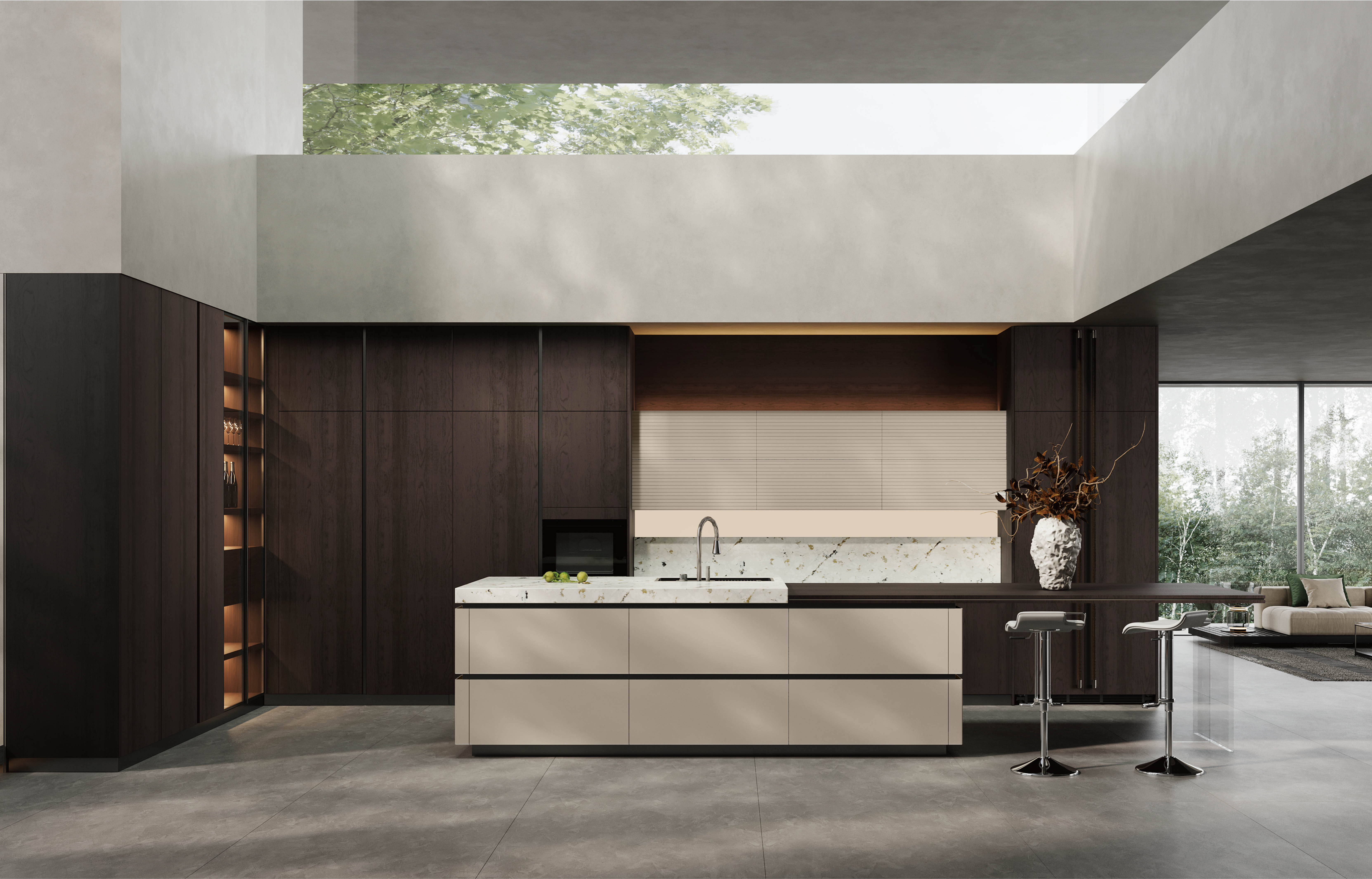 通过尊龙厨柜量体裁柜,定制出适合主厨下厨的烹饪区和洗涤区的舒适高度。